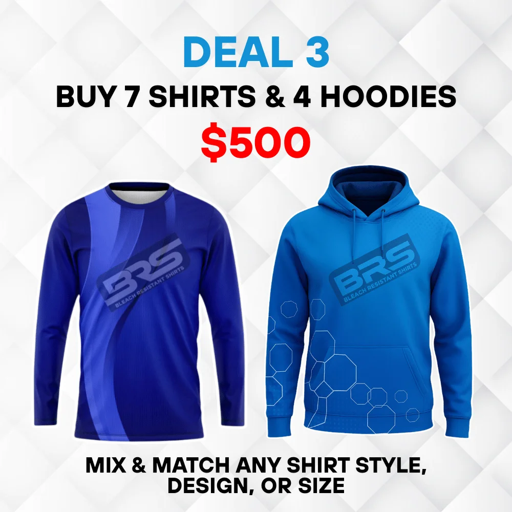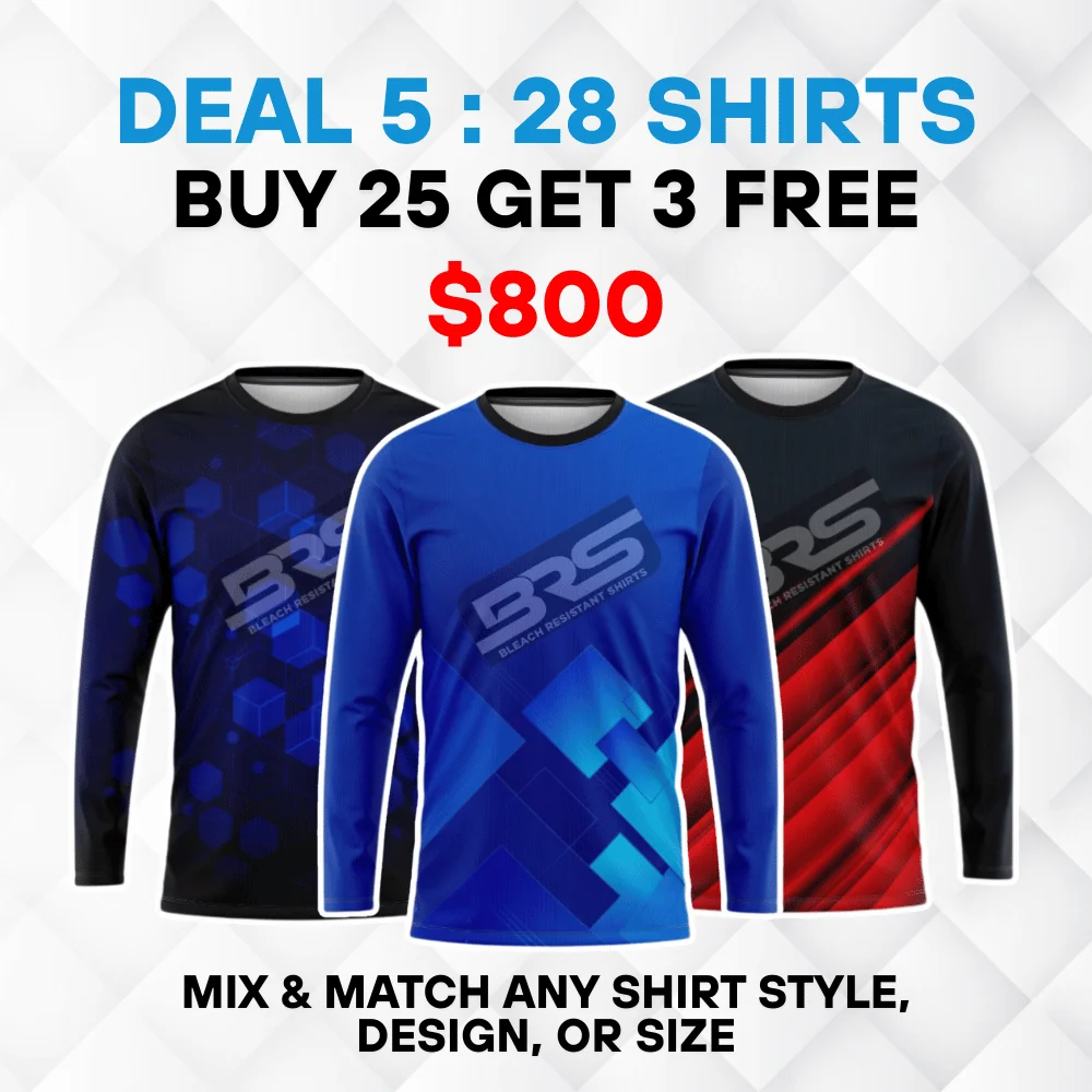 At Bleach Resistant Shirts (BRS), we believe in giving you more — more value, save more money, and more ways to stand out. Whether you're ordering for a pressure washing crew, car detailing team, or a sports group, our bundle deals are designed to give you the best quality at the best price.