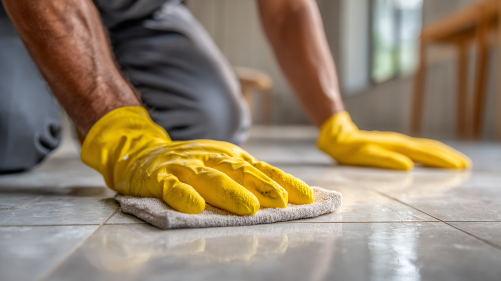 Pick strong cleaning shirts that resist bleach and feel good all day long.