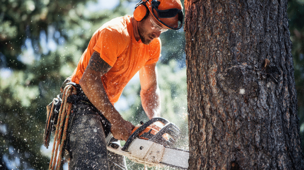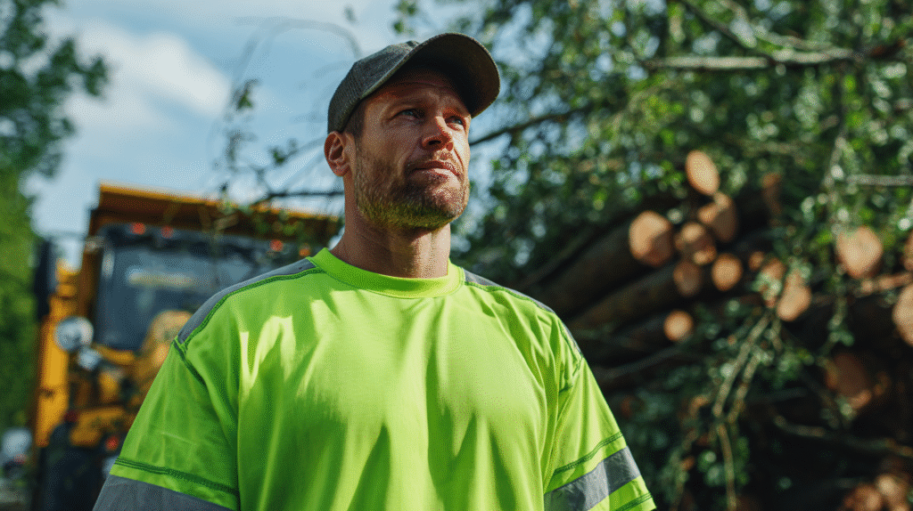 Many tree service workers wear bright colors. Orange, yellow, and lime green help people see you. This is important when you work near roads or with a team.