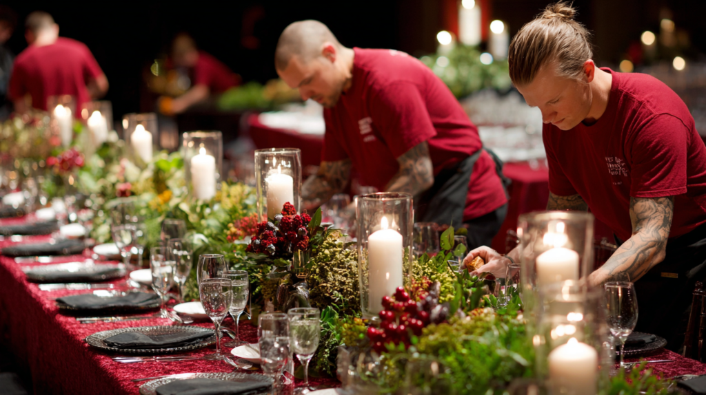 These shirts help workers move easily and stay comfortable through long holiday events. The fabric lets air in, and the strong stitches help the shirts stay in good shape. The shirts give comfort, style, and support. The material keeps workers cool during celebrations. The stitching stays firm during activities. The flexible fit helps the body move without pain. These shirts stay strong even after many washes, making them great for every holiday season.