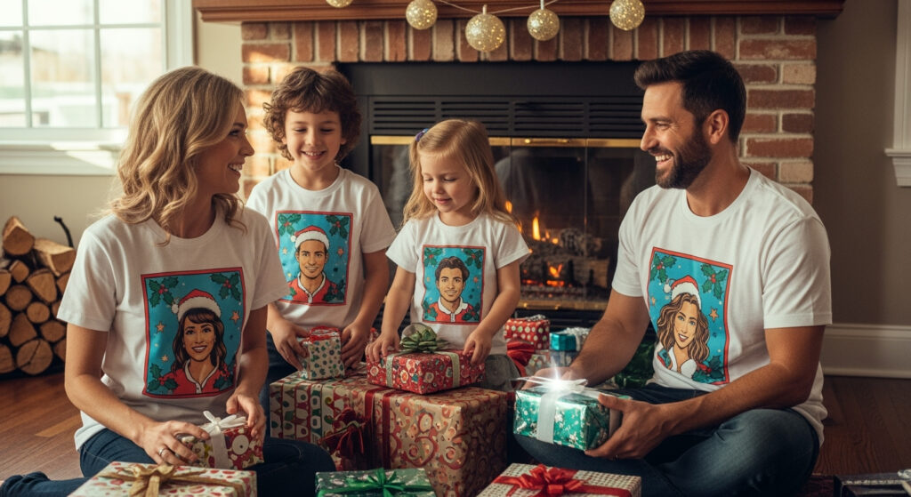 | Photo-Print Shirts | Your favorite family photo with festive effects | Christmas morning photos |